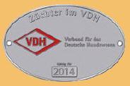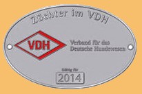 Das Qualitätssiegel "VDH-Zucht" mit Plakette und Urkunde ist uns erneut für 2014 vom Verband für das Deutsche Hundewesen zugesandt worden.